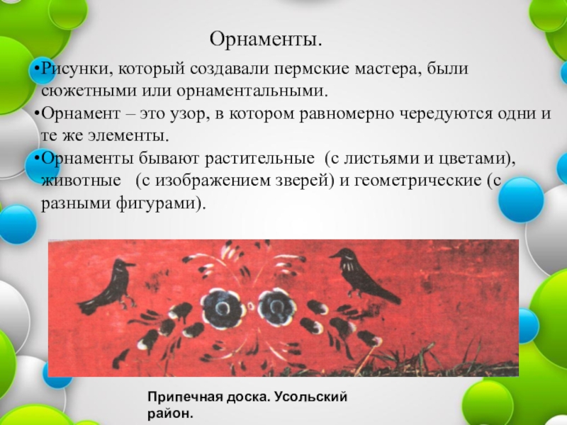 Слайд 10Русские художники Прикамья использовали все виды орнамента, в то время как