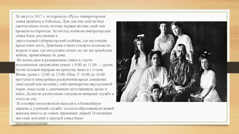 Слайд 1826 августа 1917 г. на пароходе «Русь» императорская семья прибыла в Тобольск.
