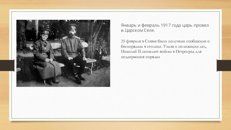 Слайд 15Январь и февраль 1917 года царь провел в Царском Селе.