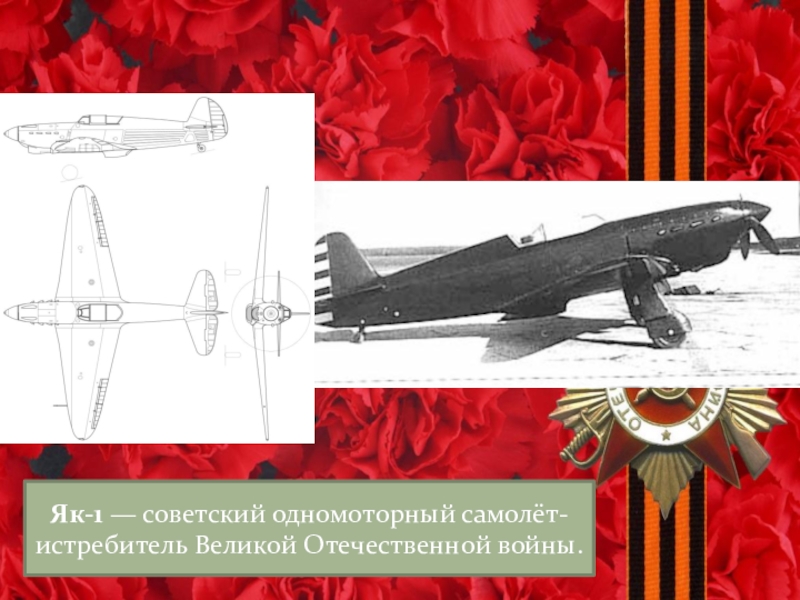 Слайд 3Як-1 — советский одномоторный самолёт-истребитель Великой Отечественной войны.