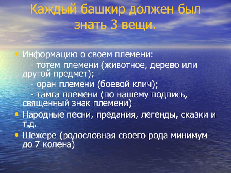 Слайд 9Каждый башкир должен был знать 3 вещи.
