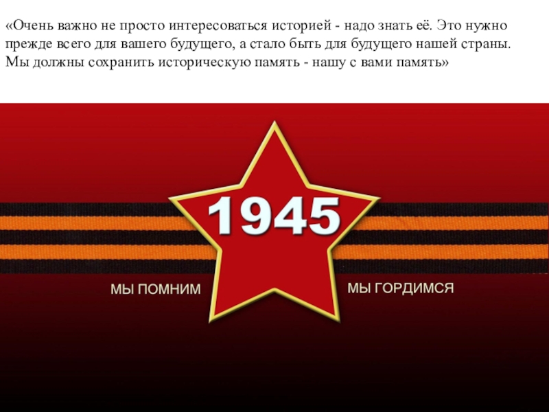 Слайд 2«Очень важно не просто интересоваться историей - надо знать её. Это