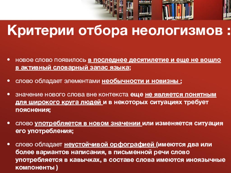 Критерии отбора неологизмов :