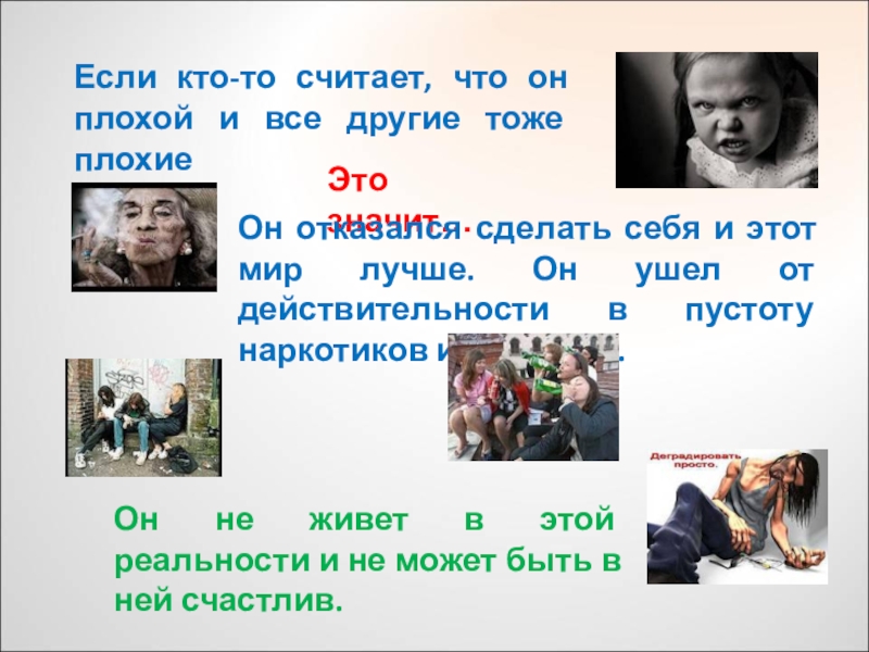 Он отказался сделать себя и этот мир лучше. Он ушел от действительности в пустоту наркотиков и алкоголя.