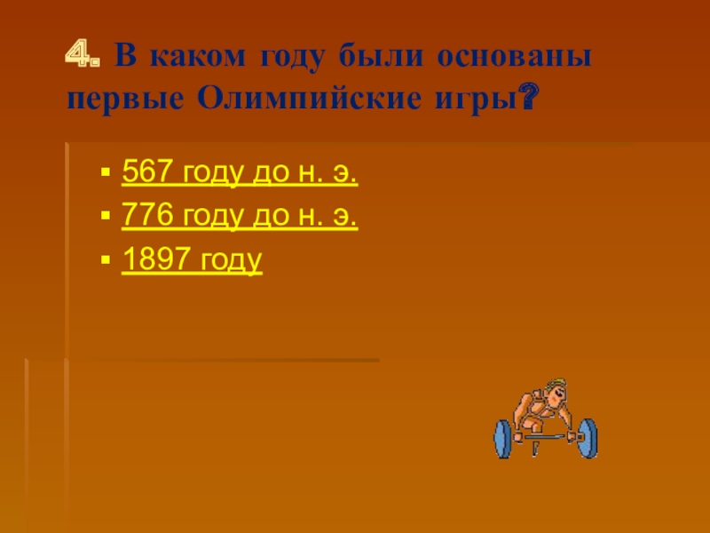 Слайд 324. В каком году были основаны первые Олимпийские игры?
