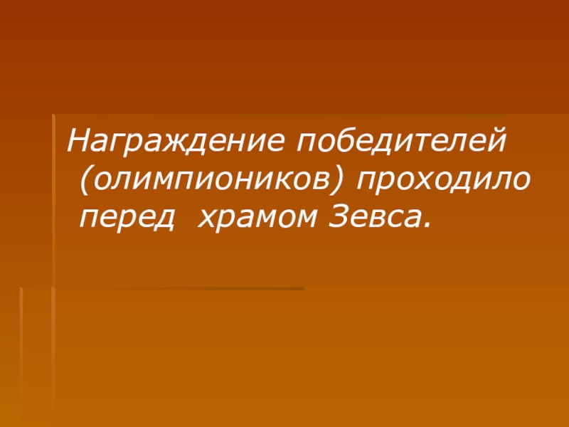 Слайд 15 Награждение победителей (олимпиоников) проходило перед храмом Зевса.