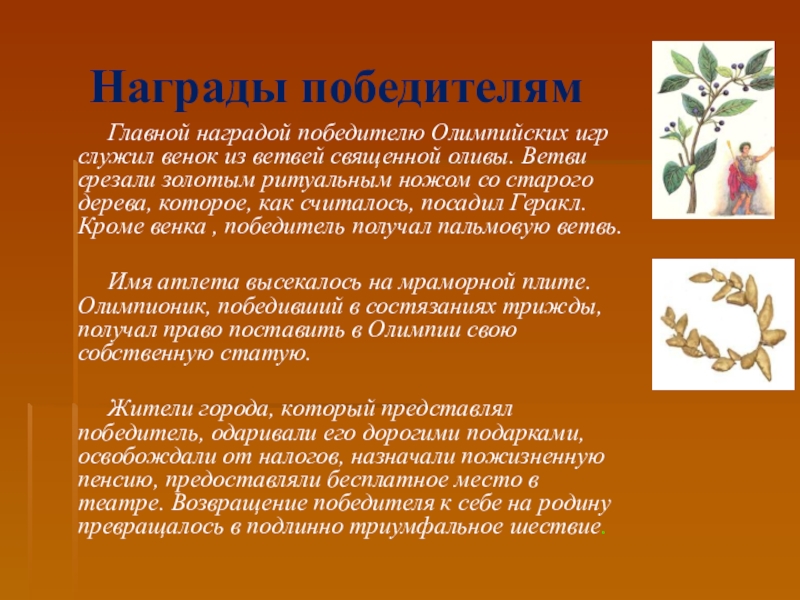 Главной наградой победителю Олимпийских игр служил венок из ветвей священной