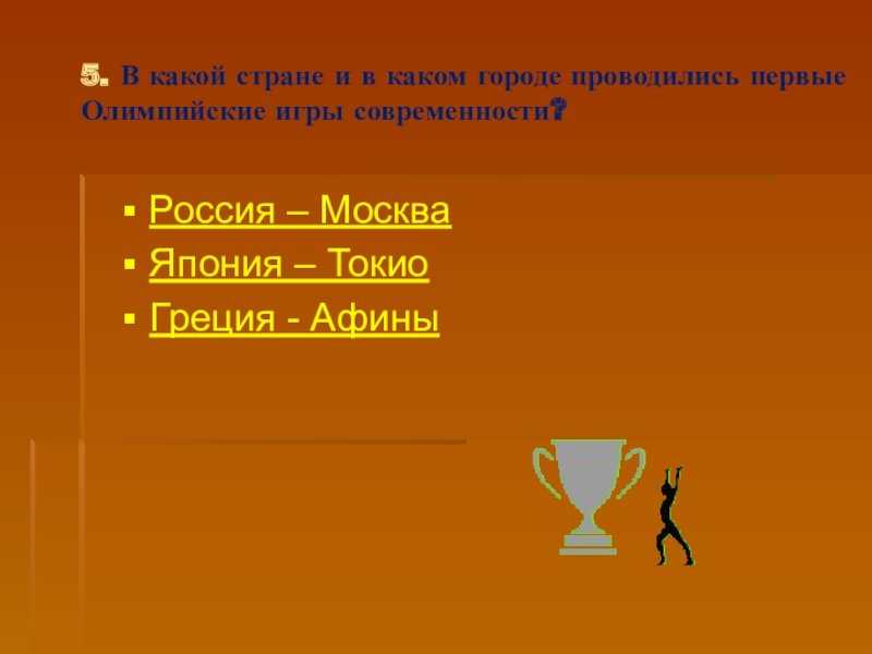 Слайд 335. В какой стране и в каком городе проводились первые Олимпийские