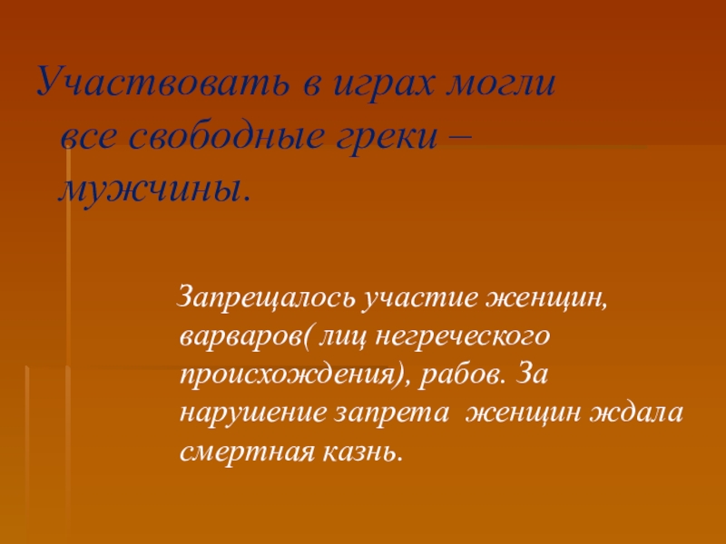 Слайд 5Участвовать в играх могли все свободные греки – мужчины.