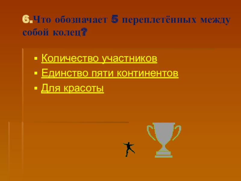 Слайд 346.Что обозначает 5 переплетённых между собой колец?
