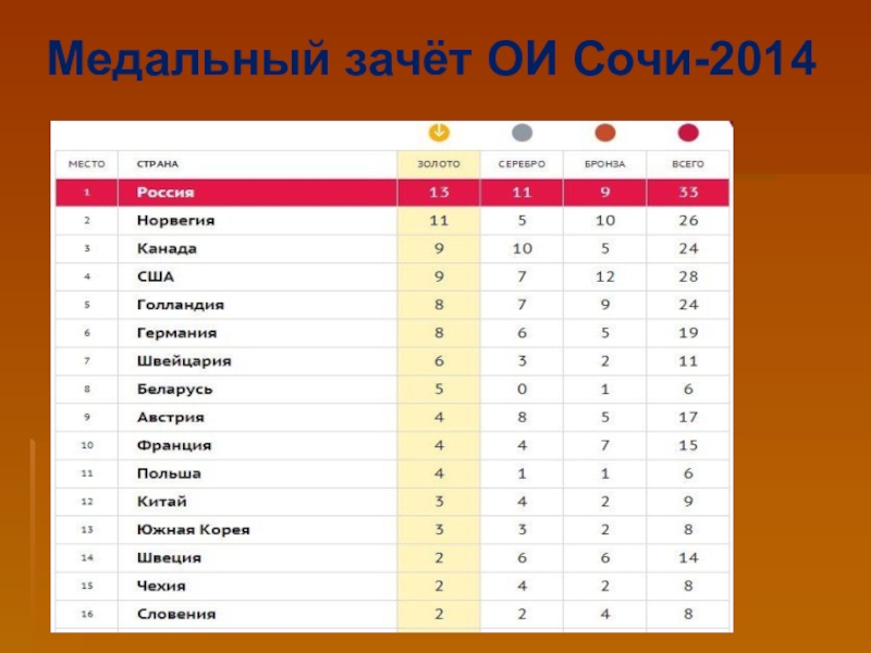 Слайд 26Медальный зачёт паралимпийских игр Сочи-2014