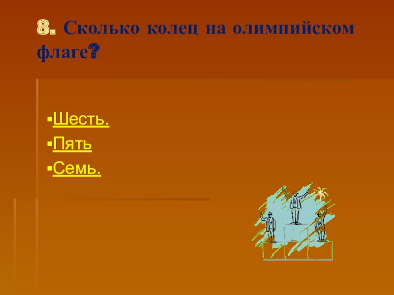 Слайд 368. Сколько колец на олимпийском флаге?