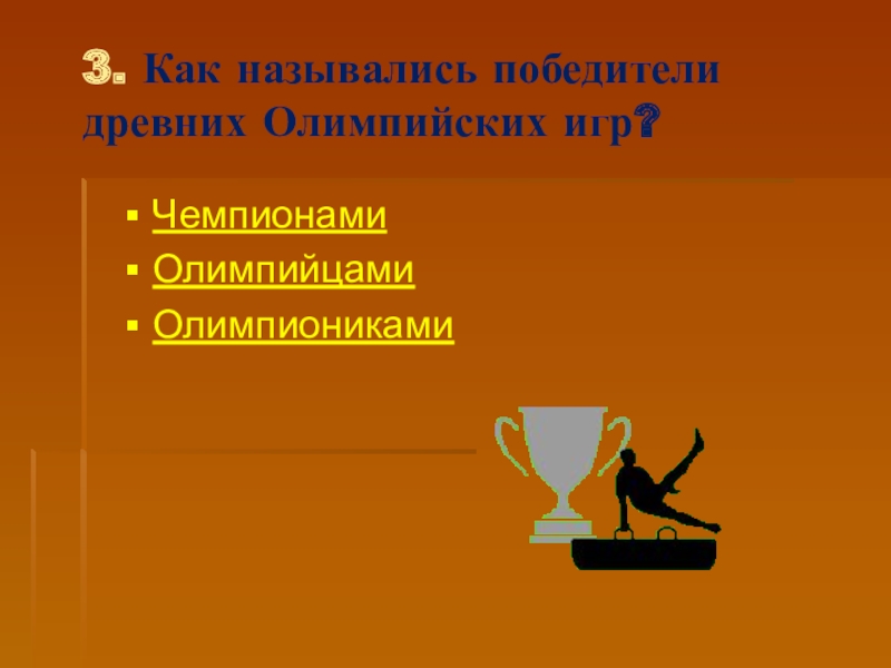 Слайд 313. Как назывались победители древних Олимпийских игр?