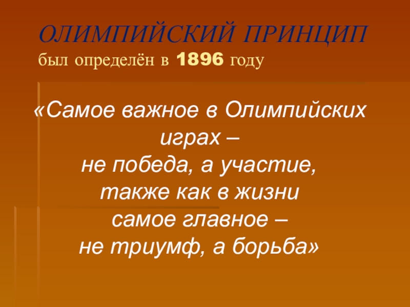 Слайд 13ОЛИМПИЙСКИЙ ПРИНЦИП