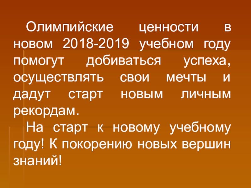Слайд 38Олимпийские ценности в новом 2018-2019 учебном году помогут добиваться успеха, осуществлять