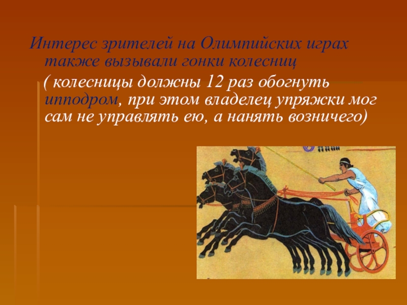 Интерес зрителей на Олимпийских играх также вызывали гонки колесниц