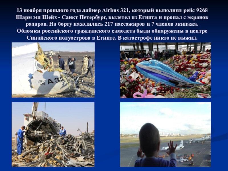 Слайд 2413 ноября прошлого года лайнер Airbus 321, который выполнял рейс 9268