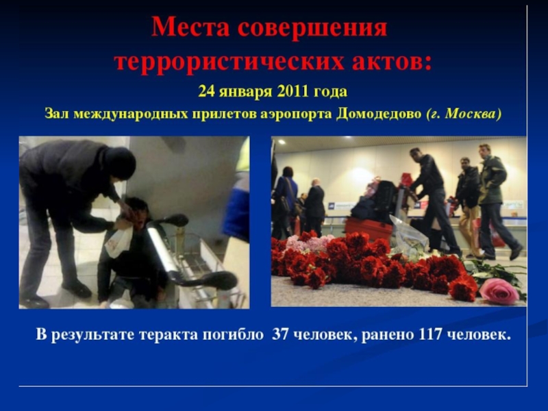 Слайд 23Взрывы в Московском метро 29 марта 2010 г. двумя террористками-смертницами дагестанского