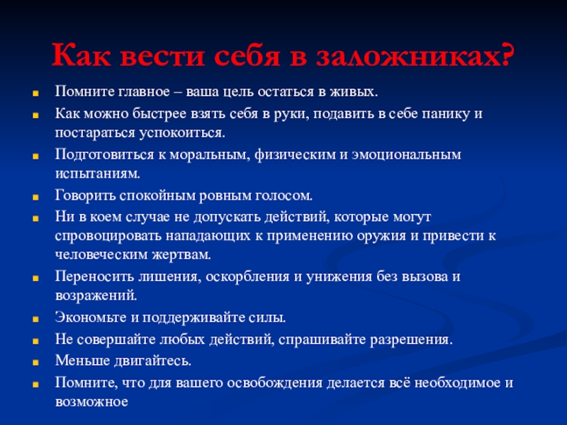 Ни в коем случае не допускать действий, которые могут спровоцировать нападающих к применению оружия и привести к человеческим жертвам.