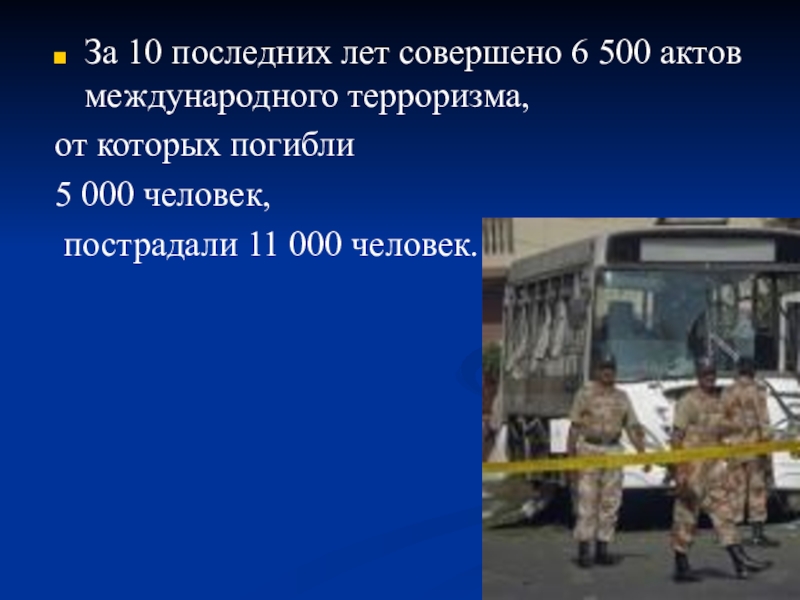 Слайд 6За 10 последних лет совершено 6 500 актов международного терроризма,