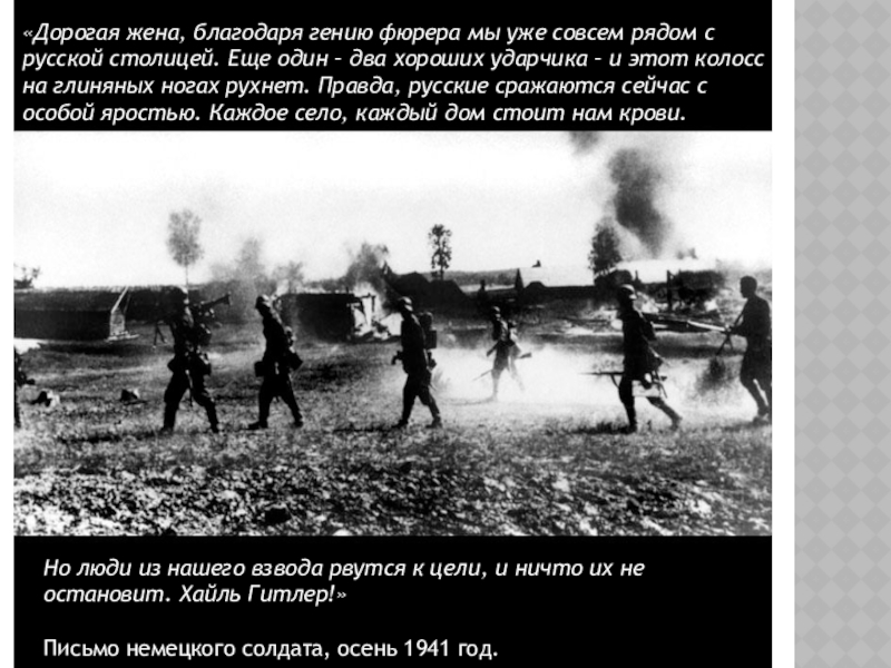 Но люди из нашего взвода рвутся к цели, и ничто их не остановит. Хайль Гитлер!»