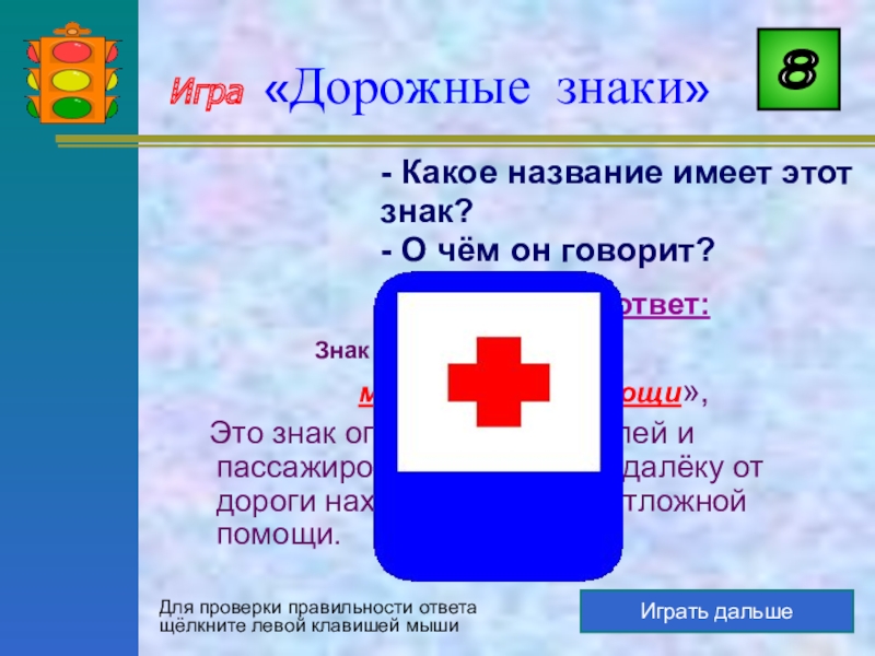 Это знак оповещает водителей и пассажиров о том, что неподалёку от дороги находится пункт неотложной помощи.