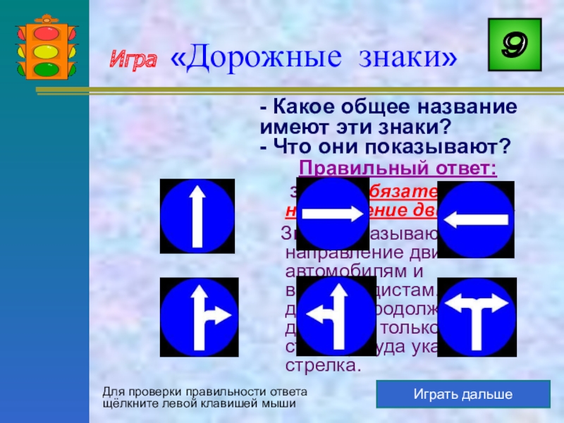 Знаки показывают направление движения автомобилям и велосипедистам. Они должны продолжать движение только в ту сторону, куда указывает стрелка.