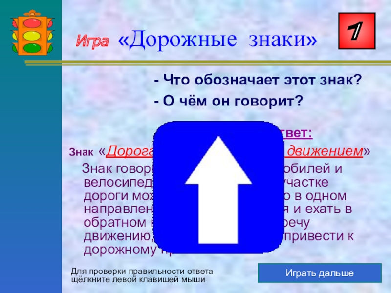 Знак говорит водителям автомобилей и велосипедистам, что на этом участке дороги можно двигаться только в одном направлении. Разворачиваться и ехать в обратном направлении, навстречу движению, нельзя. Это может привести к дорожному происшествию.