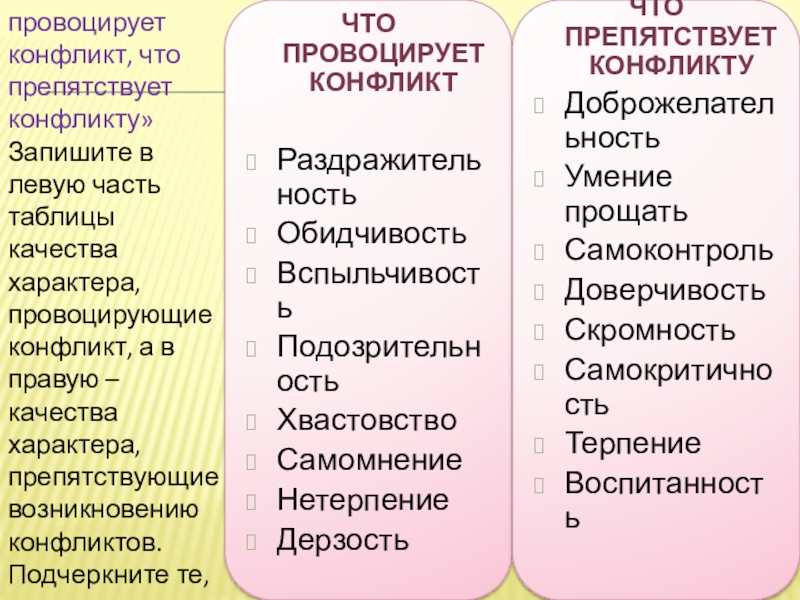 ЧТО ПРЕПЯТСТВУЕТ КОНФЛИКТУ