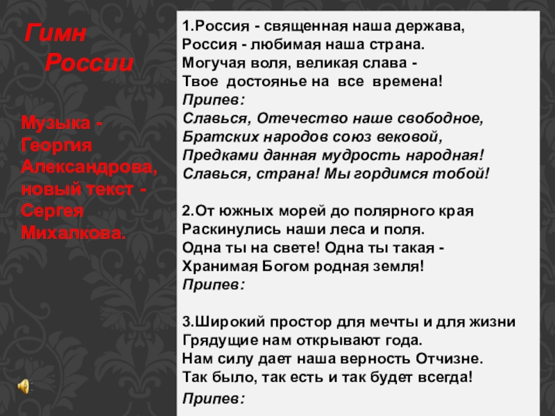 Музыка - Георгия Александрова, новый текст - Сергея Михалкова.