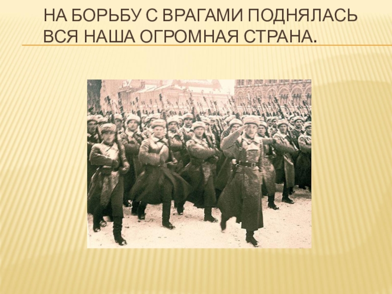 Слайд 4НА БОРЬБУ С ВРАГАМИ ПОДНЯЛАСЬ ВСЯ НАША ОГРОМНАЯ СТРАНА.