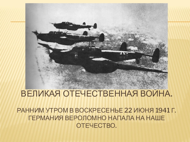 ВЕЛИКАЯ ОТЕЧЕСТВЕННАЯ ВОЙНА.   РАННИМ УТРОМ В ВОСКРЕСЕНЬЕ 22 ИЮНЯ 1941 Г. ГЕРМАНИЯ ВЕРОЛОМНО НАПАЛА НА