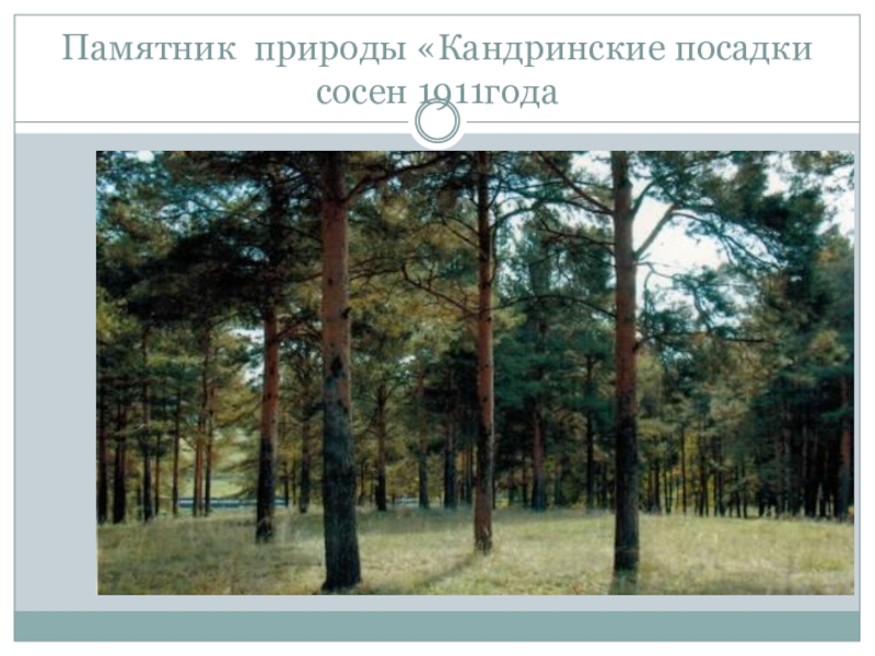 Слайд 27Памятник природы «Кандринские посадки сосен 1911года