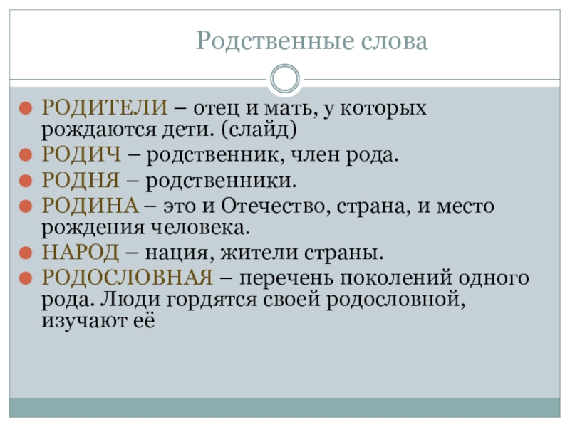 РОДИТЕЛИ – отец и мать, у которых рождаются дети. (слайд)