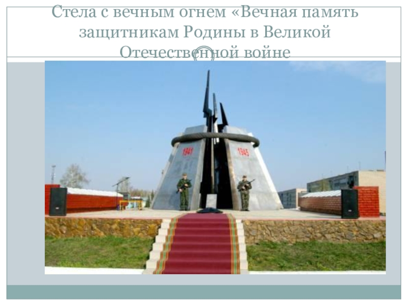 Слайд 23Стела с вечным огнем «Вечная память защитникам Родины в Великой Отечественной