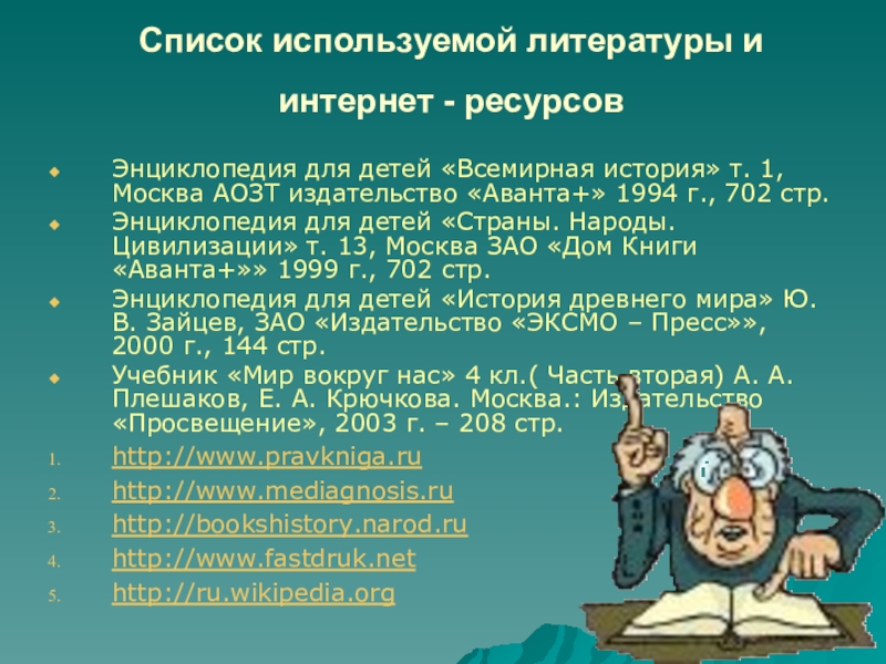 Слайд 45Список используемой литературы и интернет - ресурсов