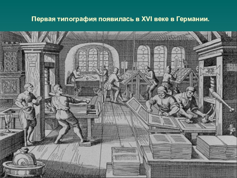 Слайд 20Первая типография появилась в XVI веке в Германии.