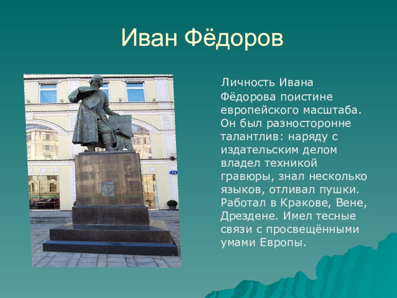 Личность Ивана Фёдорова поистине европейского масштаба. Он