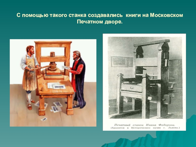 Слайд 30С помощью такого станка создавались книги на Московском Печатном дворе.