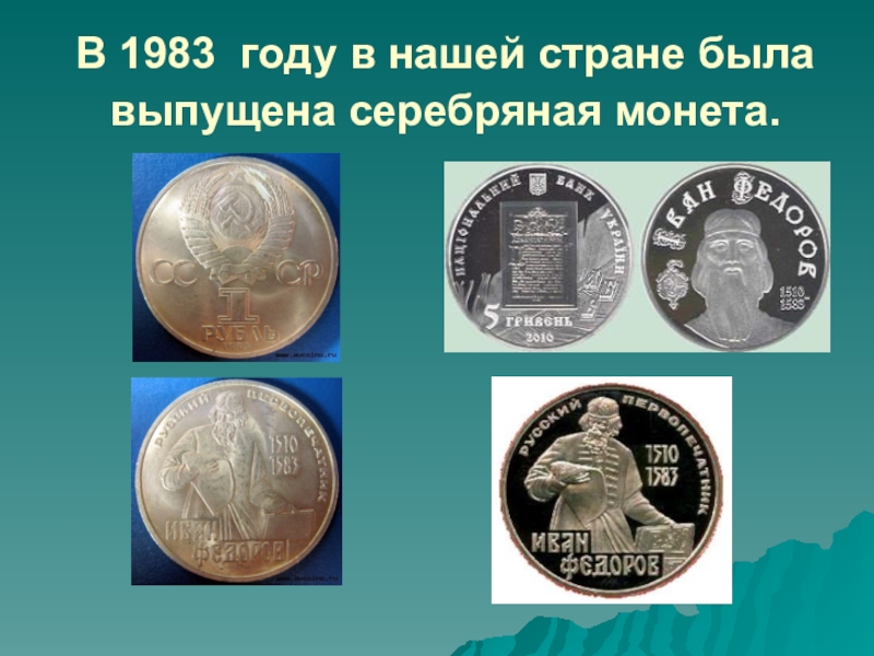 Слайд 40В 1983 году в нашей стране была выпущена серебряная монета.