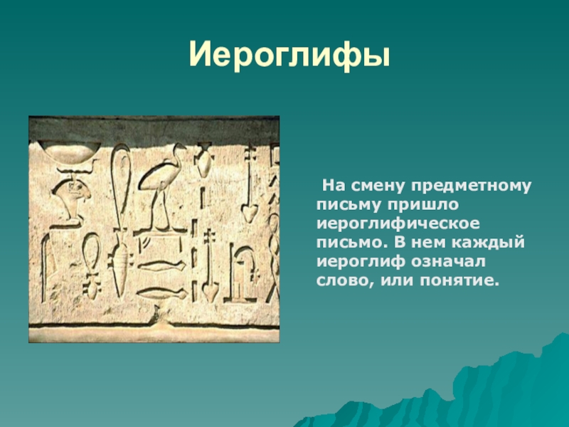 На смену предметному письму пришло иероглифическое письмо. В