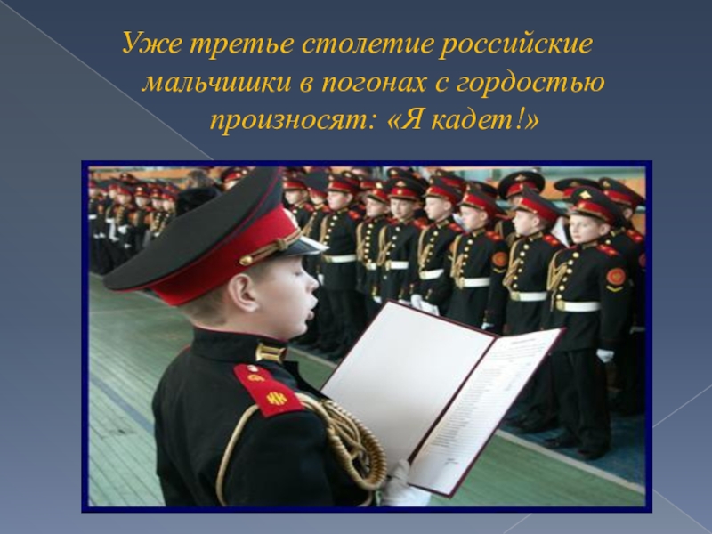 Слайд 2Уже третье столетие российские мальчишки в погонах с гордостью произносят: «Я