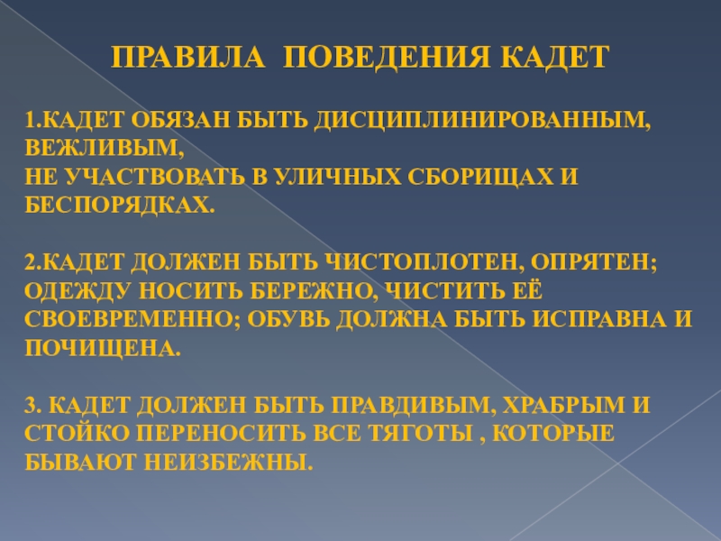 1.Кадет обязан быть дисциплинированным, вежливым,