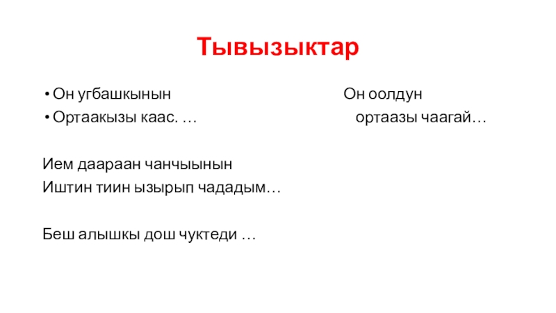 ТывызыктарОн угбашкынын