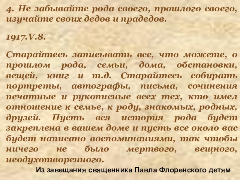 Из завещания священника Павла Флоренского детям