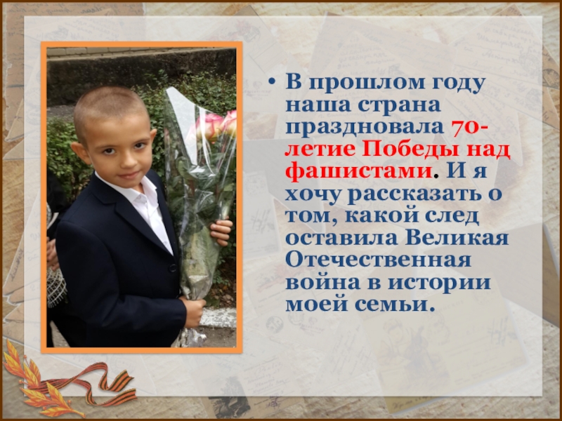 я хочу рассказать о том, какой след оставила Великая Отечественная война в истории моей семьи.