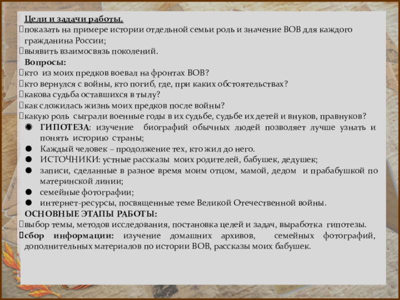 ГИПОТЕЗА: изучение биографий обычных людей позволяет лучше узнать и понять историю страны;