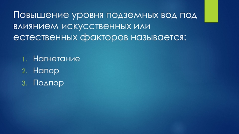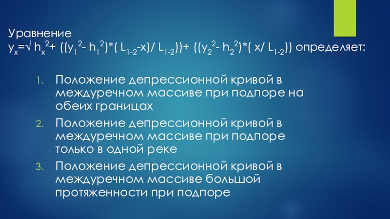 Положение депрессионной кривой в междуречном массиве большой протяженности при подпоре