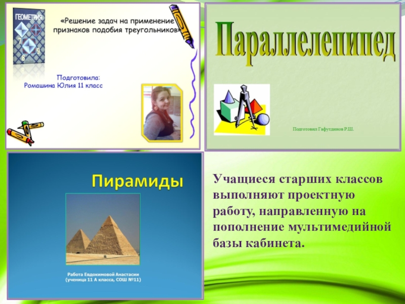 Это сайт презентаций, где можно хранить и обмениваться своими презентациями, докладами, проектами, шаблонами в формате PowerPoint с другими пользователями. Мы помогаем школьникам, студентам, учителям, преподавателям хранить и обмениваться учебными материалами.