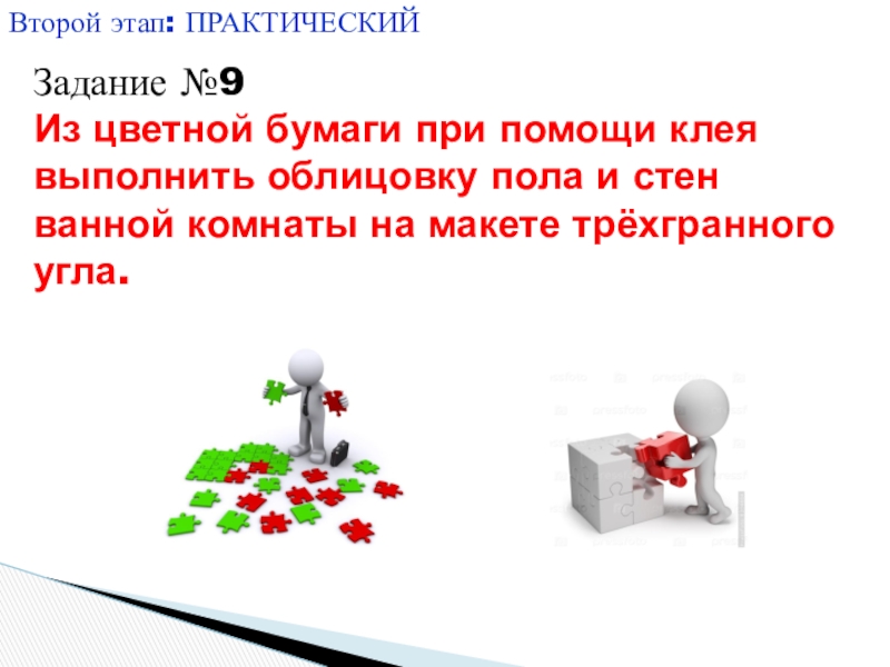 Второй этап: ПРАКТИЧЕСКИЙЗадание №9Из цветной бумаги при помощи клея выполнить облицовку пола и стен ванной комнаты на